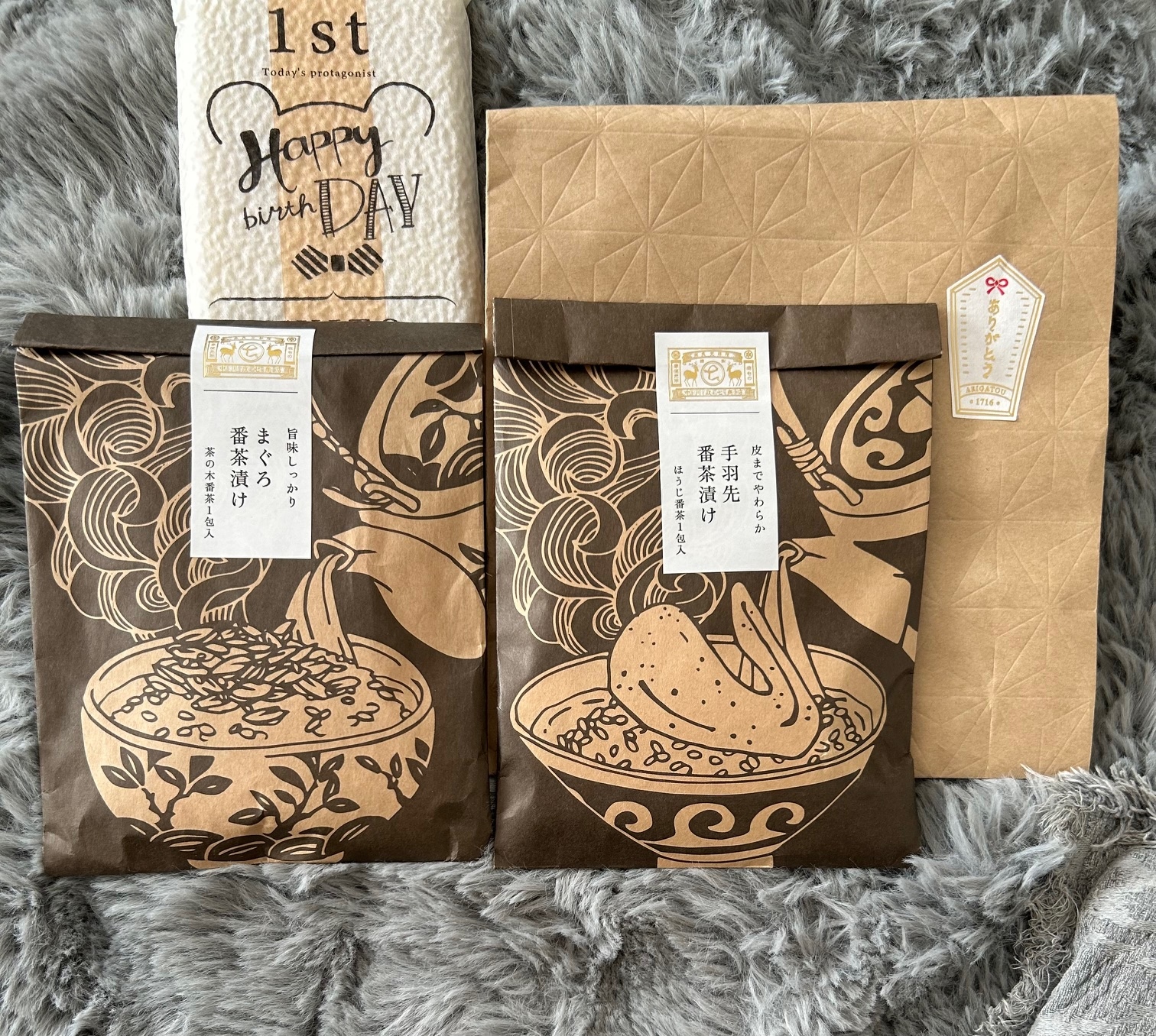 お祝い 先日、孫が一歳になりました🥳頑張って一升米背負ったようです❣️そのお米のお裾分けと美味しそうなお茶漬けが届きました。食べるのもったいないようなでも食べないのももったいないので、味わっていただきますね‼️元気にスクスクと育ってくれて嬉しいです☺️
